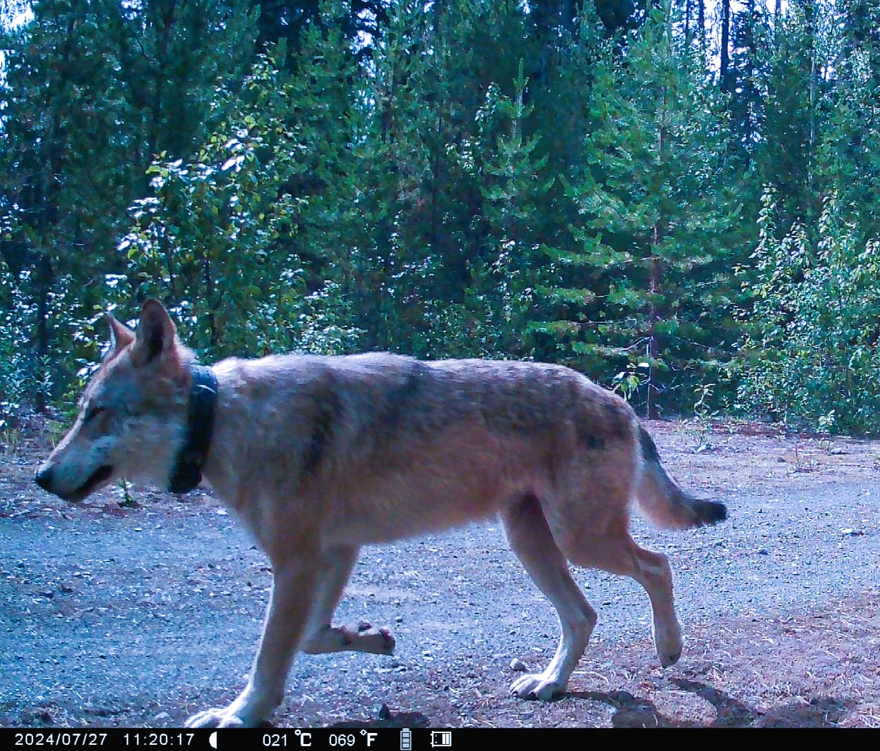 On our latest field excursion for the Wilps ‘Wii K’aax Territorial Stewardship Initiative we set out to gather data on the Lax’yip’s current status and conditions. However, our journey took an unexpected turn when our trail camera captured an image that brought our camp to a sombre and profound silence. Mahlasxwit, a wolf bearing the evidence of a radio collar, appeared before us—a ‘Judas’ wolf, a term used for wolves that unknowingly lead their kin to their demise under the BC wolf cull program.